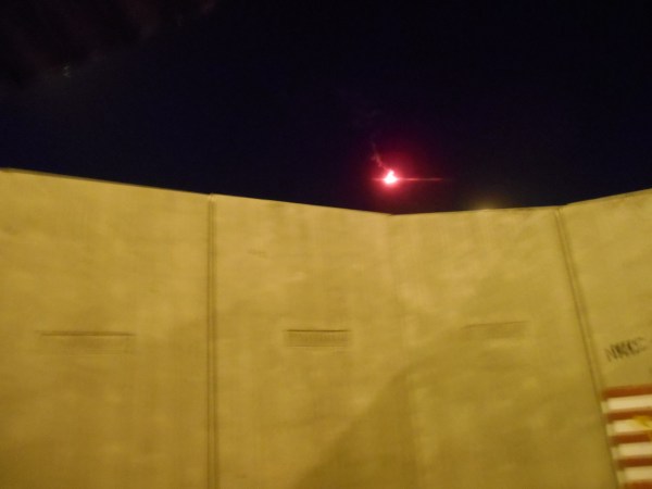 Before James could exit the building to take refuge in a nearby concrete bunker, the second explosion hit surprisingly close. This one shook the building with more force, causing books and DVDs on shelves to fall to the floor. James ran out the door with his weapon and protective gear and got in the bunker. He sat in the dirt and leaned up against the wall listening to the sirens and voices over the broadcast system. Looking back and forth out both sides of the bunker James noticed there was no one else around him. He was alone in the bunker. He wondered where his two office mates were and where on the base the last rocket fell. James knew it had definitely landed somewhere close, closer to him than any previous blast had landed.